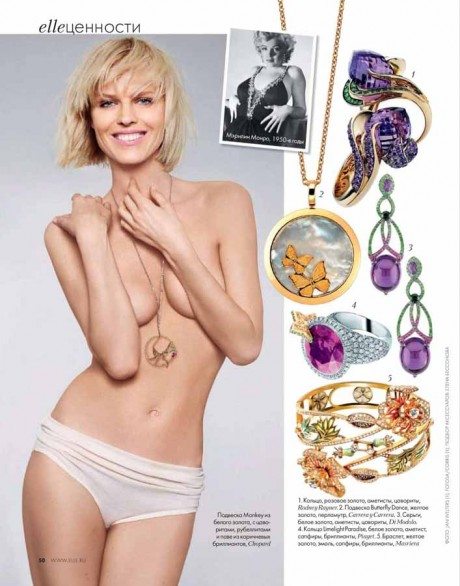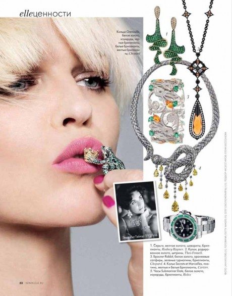 La modella, più bionda che mai, appare negli scatti del magazine, con un’aria ironica e allo stesso tempo sexy. In una foto, per esempio, bacia un piccolo ciondolo a forma di rospo.