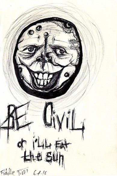 I disegni sono stati firmati con lo pseudonimo Fiddle Tim e saranno visibili fino all’1 agosto alla galleria La Luz de Jesus a Los Angeles, inoltre sono stati già venduti.