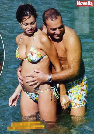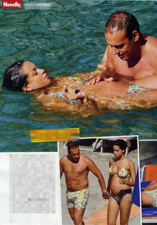 Intanto noi diamo un’occhiata a queste immagini che ritraggono un perfetto quadretto familiare, Ruby con il pancione ed un affettuoso Luca Risso, i due hanno addirittura i costumi abbinati, se non è amore questo…!