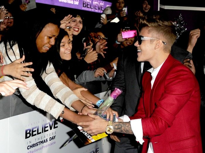 A Los Angeles c’erano molti suoi amici, tra cui Jaden Smith, ma anche Kylie Jenner, Jacquie Lee, Gabby Douglas, Mike Posner, Usher e la sempre presente mamma Pattie Mallette. Di rosso vestito, natalizio, un Babbo Natale idolo delle teenager con tanto di catena d’oro al collo, Justin è stato ricoperto dall’affetto (urlato) delle sue fan.