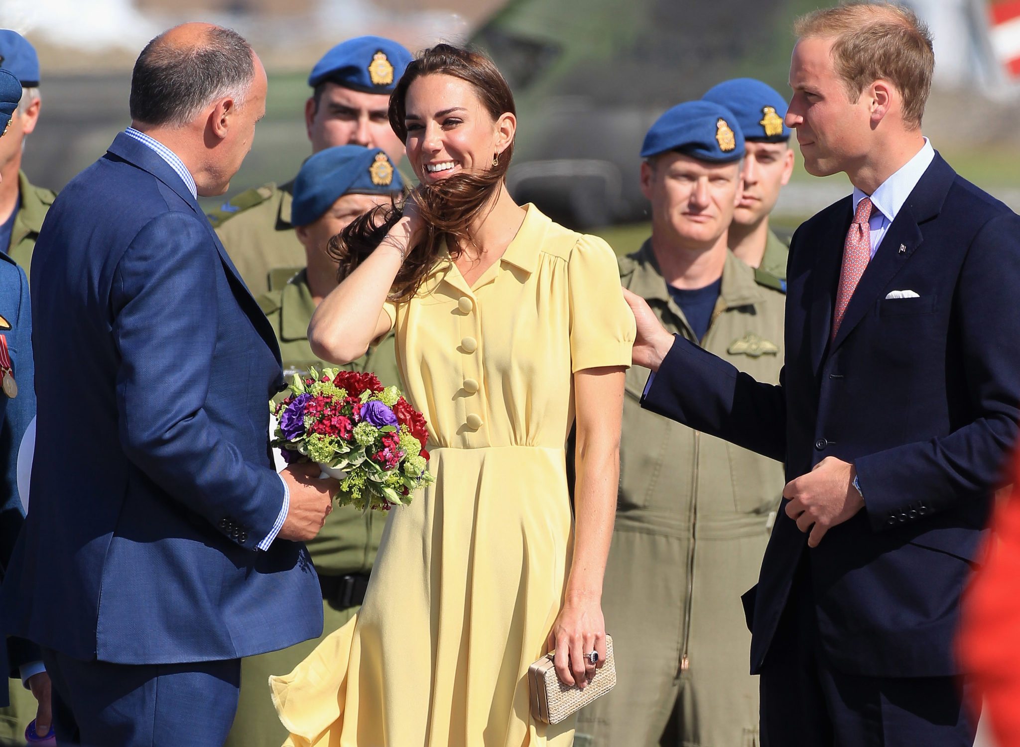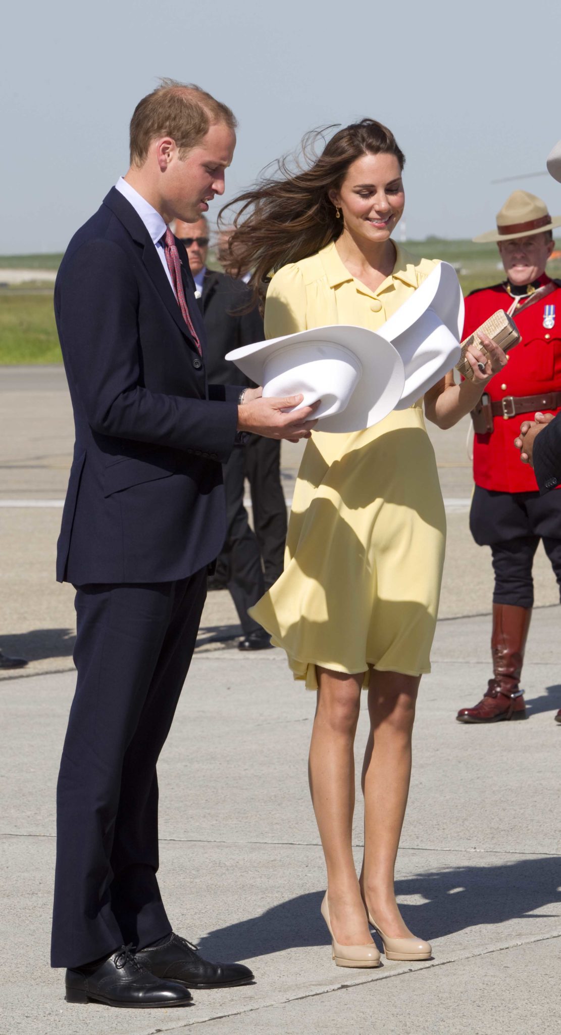 Kate Middleton continua a far parlare di sé, ma questa volta per questioni molto meno diplomatiche. La foto del giorno arriva direttamente dal viaggio in Canada di William e Kate. In questi giorni non s’è parlato d’altro che dello stile inconfondibile della duchessa di Cambridge, sempre azzeccato per l’occasione. William e Kate | © Chris Jackson / Getty ImagesMa forse questa volta una piccola pecca c’è stata, visto che Kate non ha fatto i conti con l’elicottero. Un vero e proprio effetto Marilyn, anche senza metropolitana et voilà, il lato b della bellezza reale si è scoperto per la gioia dei paparazzi e dei fan, forse offuscando ulteriormente il fenomeno Pippa Middleton. In quanto a lato b, pare che Kate non abbia davvero nulla da invidiare alla sorella. Intanto dal Canada arrivano anche nuove immagini, che ci mostrano la coppia reale in versione cowboy per il rodeo. Pare che la cosa abbia divertito parecchio gli sposini, che in questi giorni hanno passato molto tempo a compiere le più svariate attività: dal canottaggio all’hockey, passando per l’alta cucina. Arrivati a Calgary Stampede, in Alberta, William e Kate, insieme a Stephen Harper, sono saliti in carrozza, rigorosamente trainata dai cavalli, per assistere a un rodeo. Così, dopo l’abbigliamento formale, la Middleton si è mostrata in versione decisamente più sportiva e sempre adatta all’occasione: cappello da cowboy, jeans e camicia (a quadri, per lui), look impeccabile ed imitato anche dal principe William, che porta, fiero, la sua bella in giro per il mondo. Ma più che il rodeo, a far chiacchierare il popolo oggi sarà il vestitino giallo di Kate che all’aeroporto di Calgary ha deciso di giocarle uno scherzetto e a quel punto non basta avere molta classe per tenerlo a bada, il vento è più testardo e l’elicottero non è stata l’idea più azzeccata o, quantomeno, sarebbe stato più “smart” arrivare direttamente in tenuta far west. A voi gli scatti!