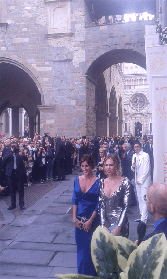 250 gli invitati, tra cui Ilary Blasi, Silvia Toffanin, l’avvocato Giulia Bongiorno, Antonio Ricci, testimone della sposa, e Vittorio Feltri, testimone dello sposo e “artefice” del suo primo incontro con la Hunziker. Bergamo Alta era davvero affolatissima, di vip e non e i più furbi non si sono lasciati sfuggire l’occasione, offrendo i loro balconi ai fotografi per la “modica” cifra di ottocento euro (!). Dopo la cerimonia è arrivato anche Silvio Berlusconi, accompagnato dalla fidanzata Francesca Pascale.
