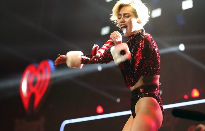 Il tutto è successo al KIIS FMs Jingle Ball 2013 allo Staples Center di Los Angeles, tra nanetti e renne particolarmente scosciate, Miley Cyrus ha concesso un altro spettacolo. Nulla di nuovo, cambia solo lo sfondo ma ormai la tecnica è consolidata e per un po’ potrà fare ancora parlare.