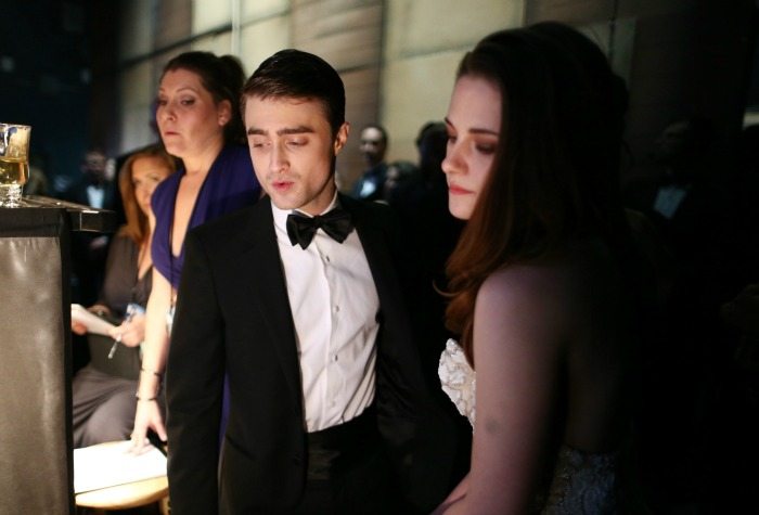 Ma tornando agli abiti, questi Oscar 2013 sono stati il trionfo del total white: basta guardare le due premiate Jennifer Lawrence e Anne Hathaway, rispettivamente come miglior attrice protagonista e migliore attrice non protagonista. Sul palco sembravano due sposine, ma non sono state le uniche a sfoggiare abiti bianchi, Zooey Deschanel non vi ha rinunciato, pur scegliendo un abito e un taglio di capelli pessimi. Bianco anche per Kristen Stewart, che sul red carpet con la sua consueta disinvoltura ha alzato il pollice ai fotografi e poi è salita sul palco degli Academy insieme al collega Daniel Radcliffe.