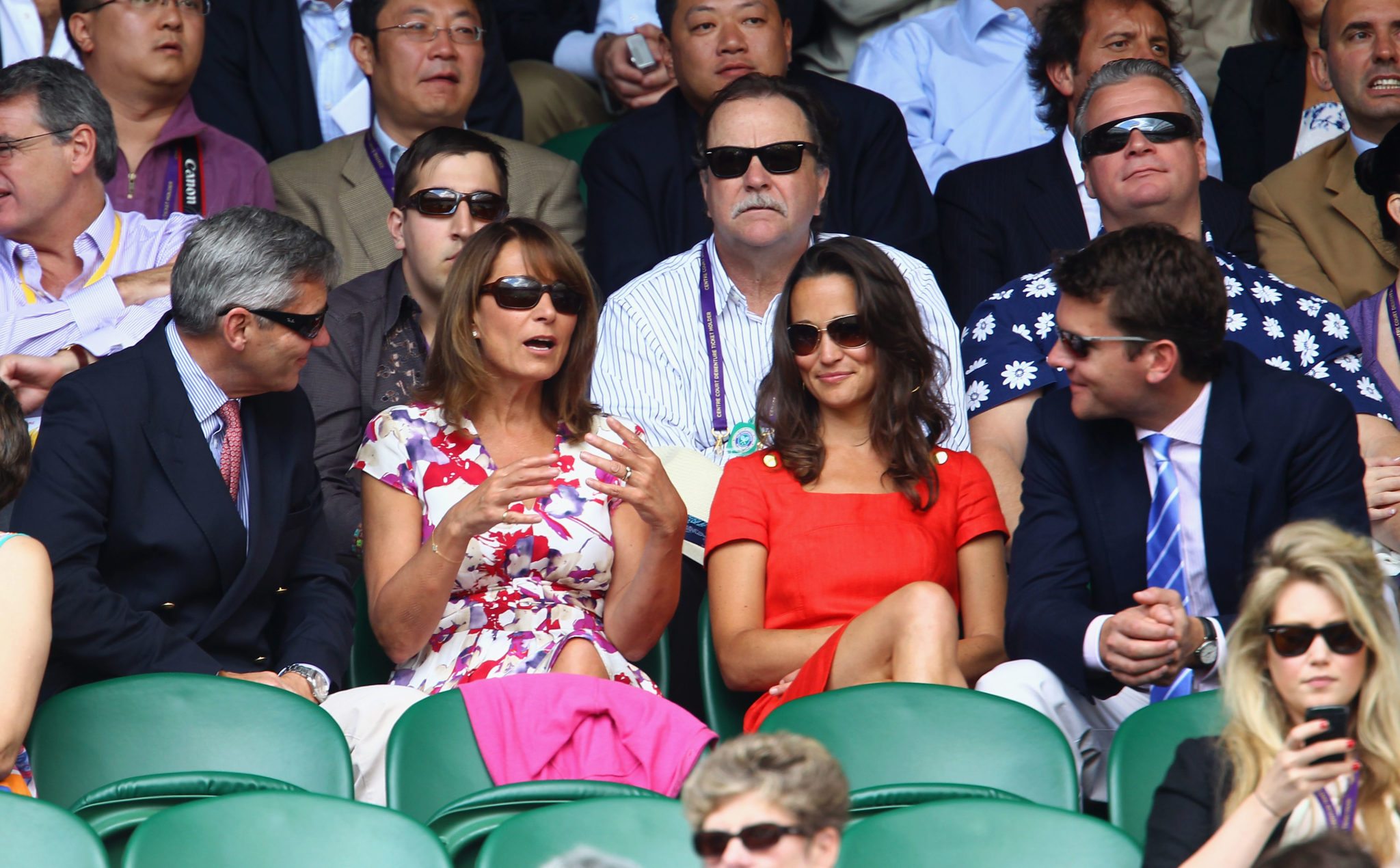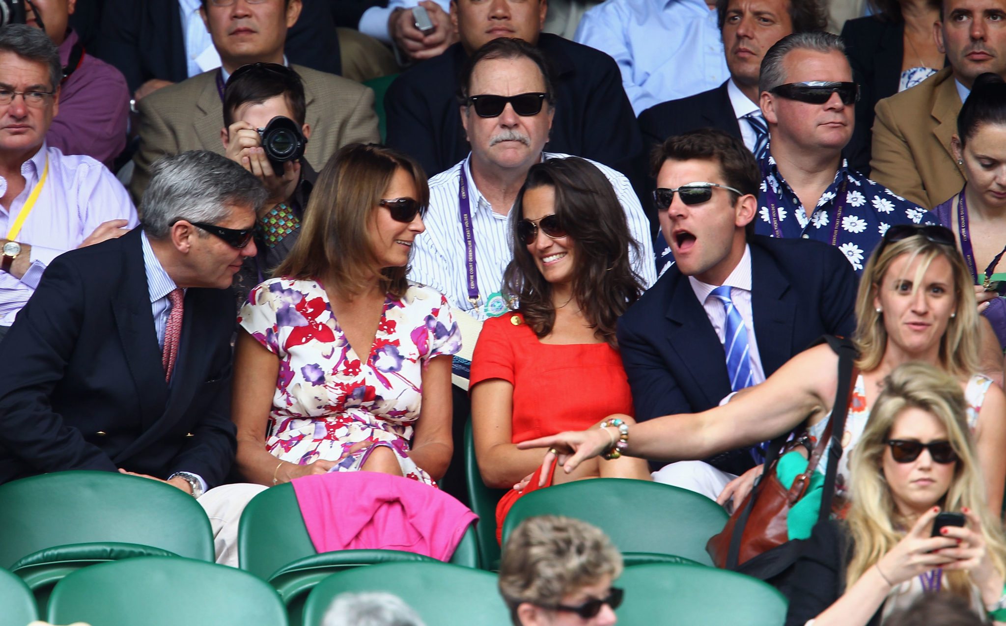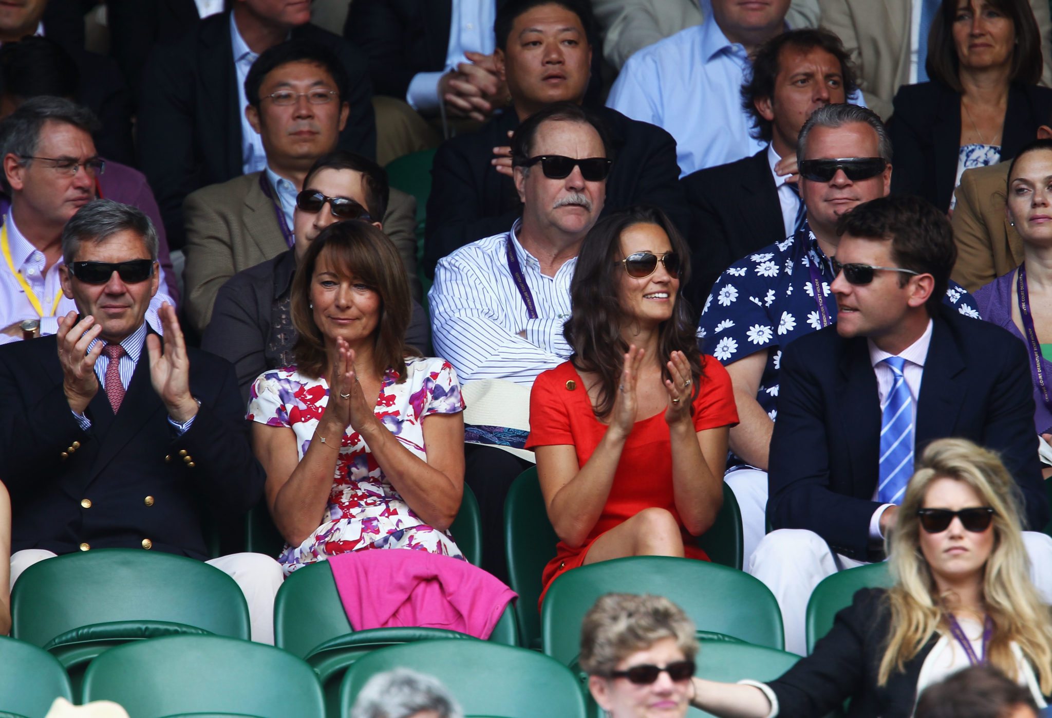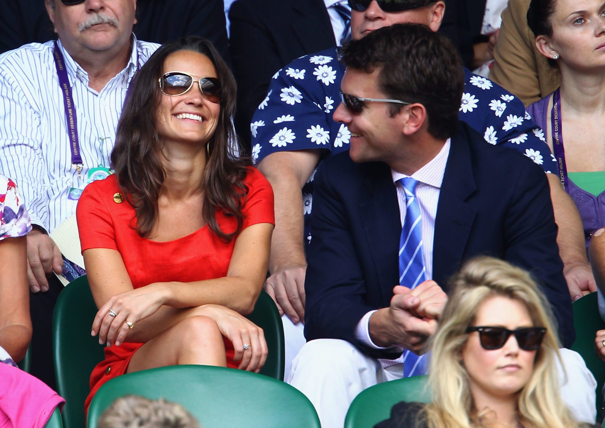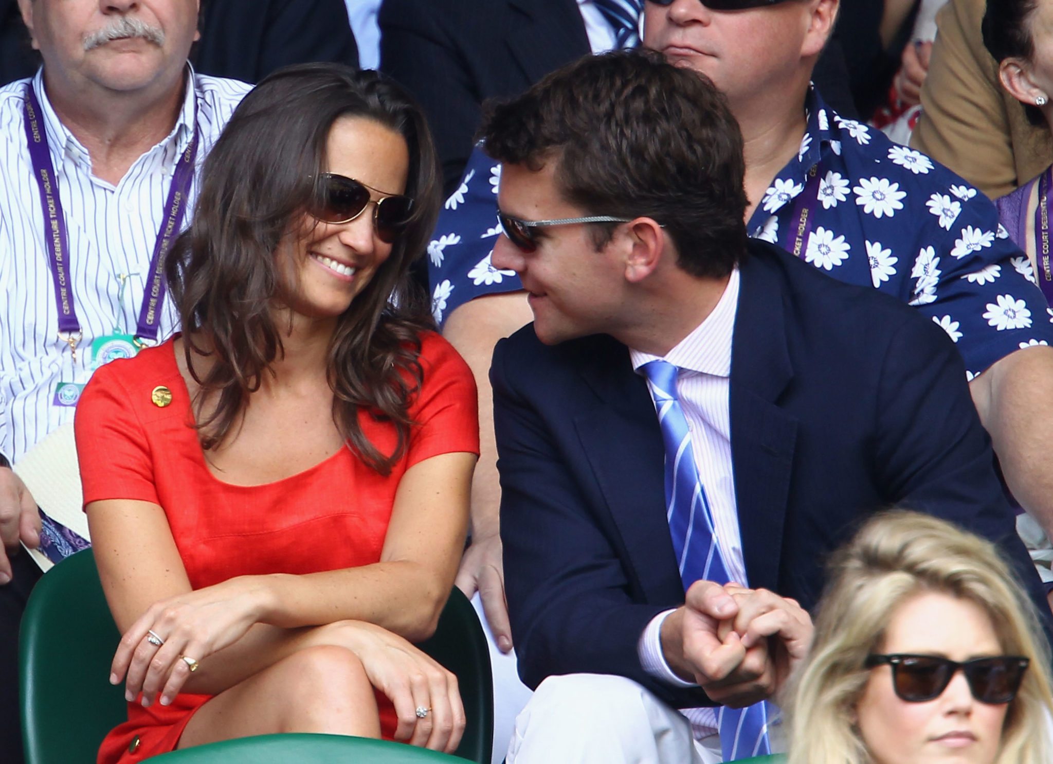 Sembra che oggi sui campi di Wimbledon i tennisti abbiano fatto scintille, ma agli amanti del gossip tutto questo importerà ben poco e vorranno gustarsi una per una le immagini di Pippa che, vestita di rosso, applaudiva divertita chiacchierando con il compagno.