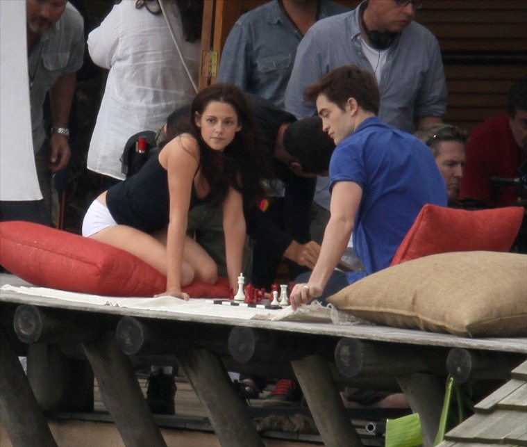 Robert Pattinson e Kristen Stewart giocano a scacchi sul set di “Breaking Dawn” sally 22 Novembre 2010 I due attori della Twilight Saga, Robert Pattinson e Kristen Stewart, intenti a giocare a scacchi sul set di “Breaking Dawn“. Foto: TheImproper Tags: Breaking Dawn Kristen Stewart Robert Pattinson Twilight Saga