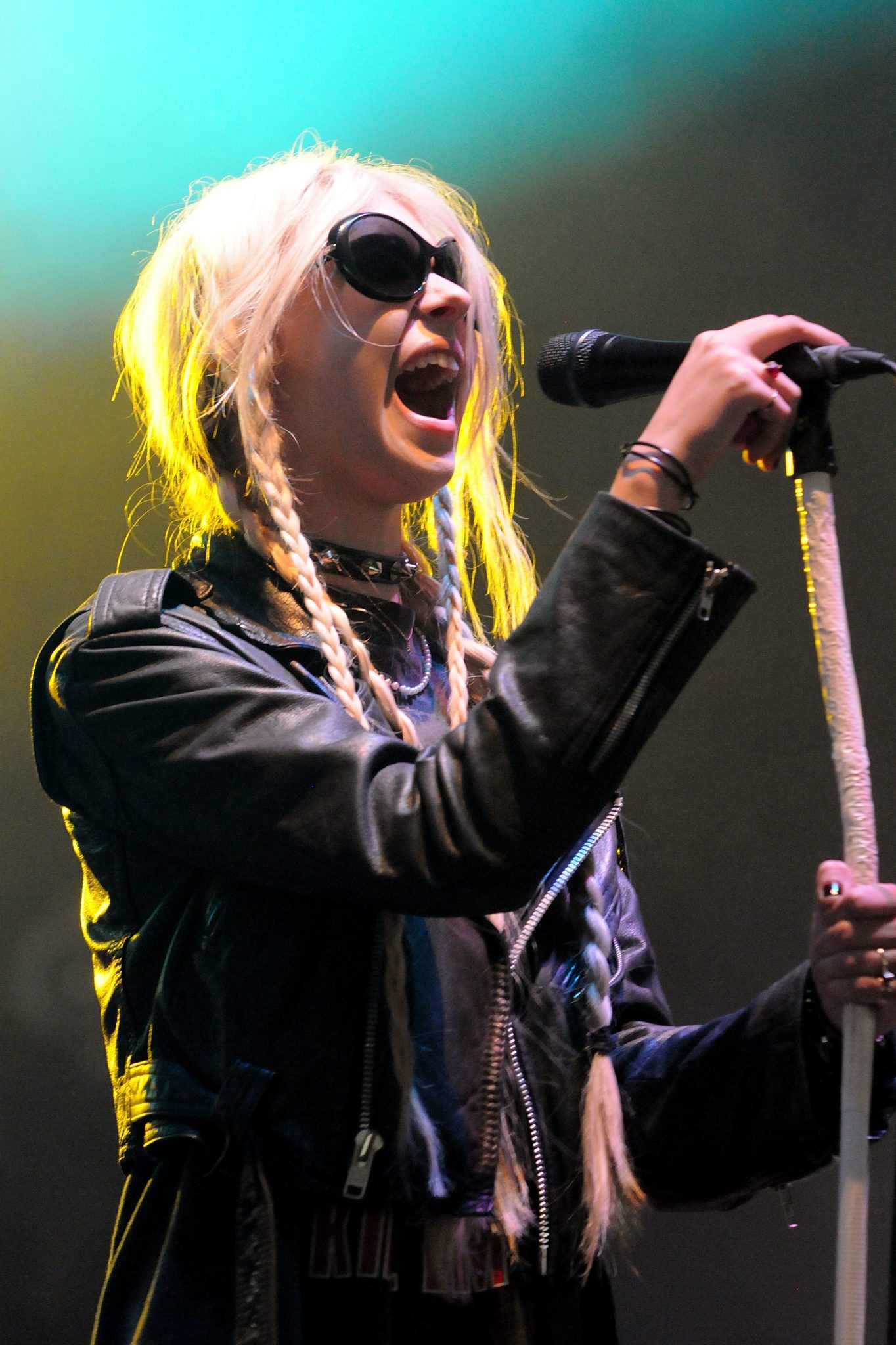 Il tour dei The Pretty Reckless continua e dopo l’Heineken Jammin Festival e il Download Festival, la biondissima Taylor Momsen e la sua band sono arrivati al Wireless Festival. Meno scandalosa del solito, ma comunque sempre trasgressiva, la Momsen ha cantato con occhiali da sole e slip bene in vista, con anfibi vertiginosi ai quali ormai sembra non poter rinunciare.
